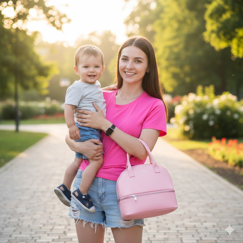 Smart dual-compartment design: keep bottles warm on top and snacks fresh below. The complete solution for parents who don't want to carry three separate bags.